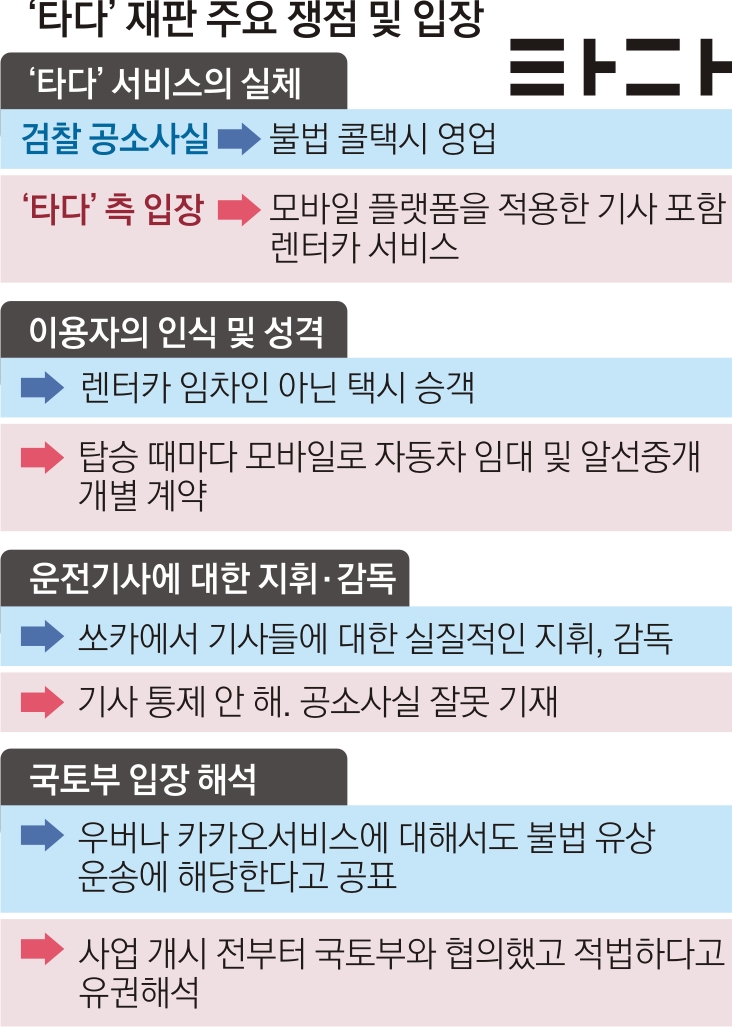 검찰측에서는 '타다'를 차량렌트 사업자가 아닌 유상여객 운송업자로써