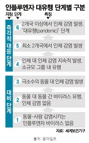 위 사진은 2009년 인플루엔자 범유행 당시 단계별 구분이고
