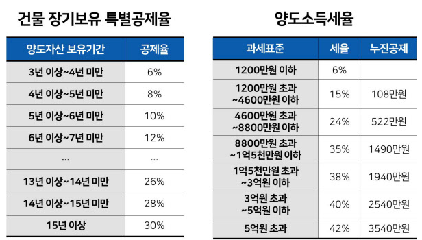 토지 및 건물을 3년 이상 보유한 경우: 보유기간 × 2%(한도 30%)