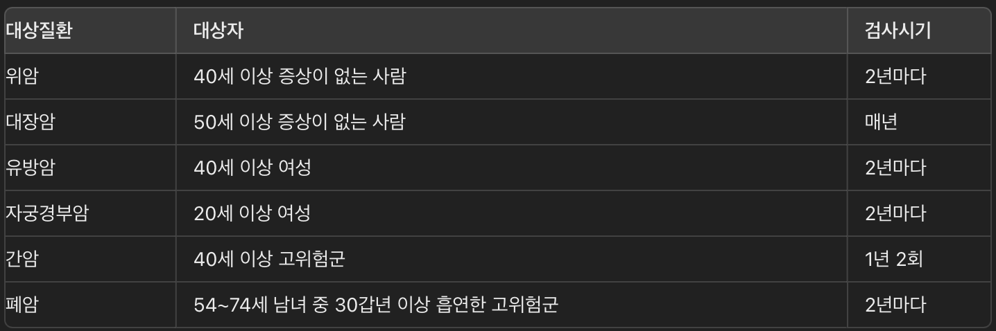 국가건강검진 및 6대 암검진 대상자와 검사항목 안내