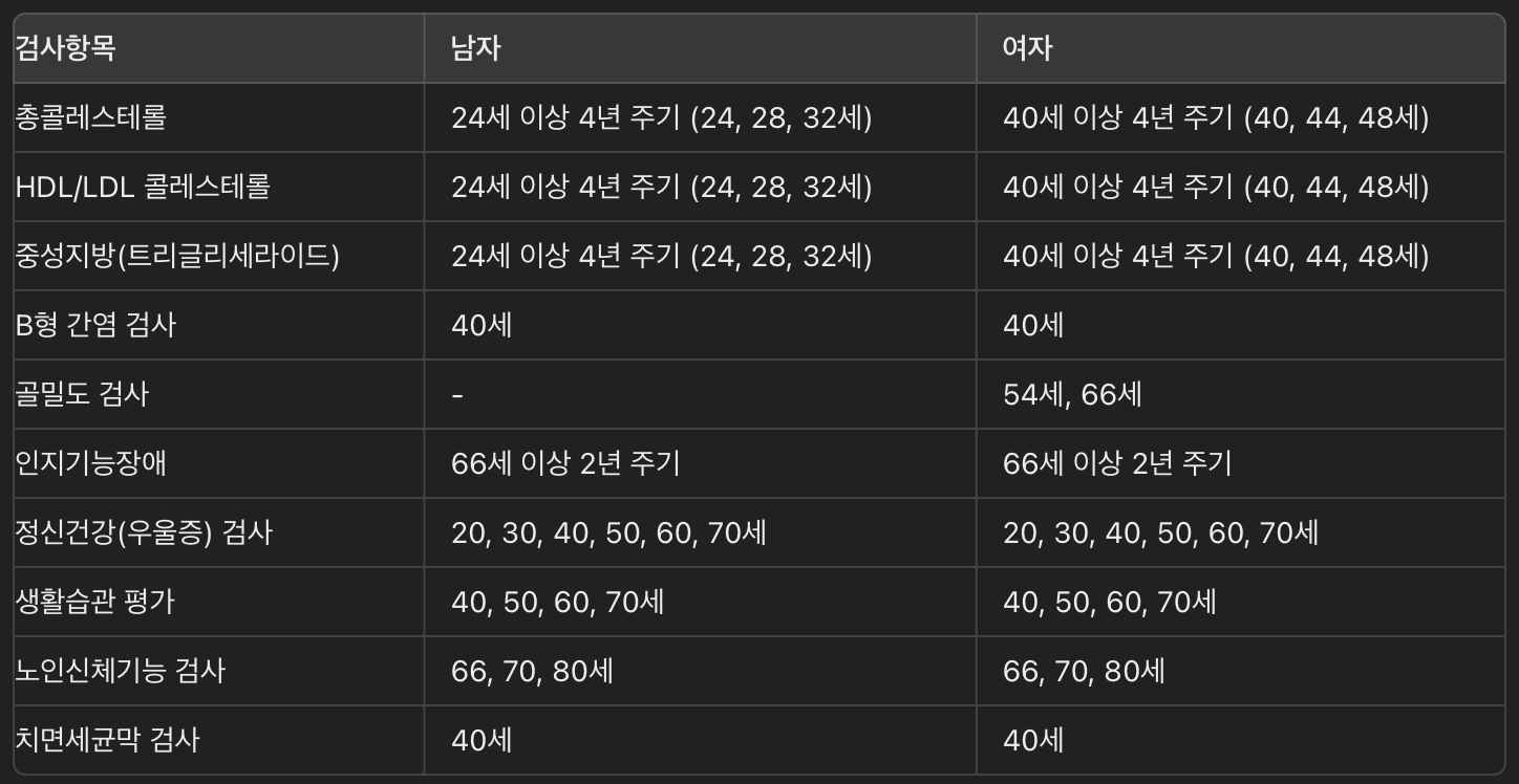 이번 글에서는 국가건강검진 대상자, 검사항목, 6대 암검진 대상자 및 검사방법, 금식 시간 등에 대해 정리해 보았습니다. 바쁜 일상 속에서도 건강을 위해 꼭 검진을 받으시길 권장드립니다.