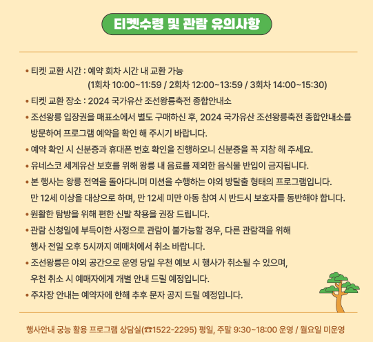 기상 상태에 따라 개방 시간이 조정될 수 있으니, 방문 전에 정확한 정보를 확인하는 것이 중요합니다. 더 자세한 내용은 국가유산청 누리집 또는 각 조선왕릉 관리소에서 확인할 수 있습니다.